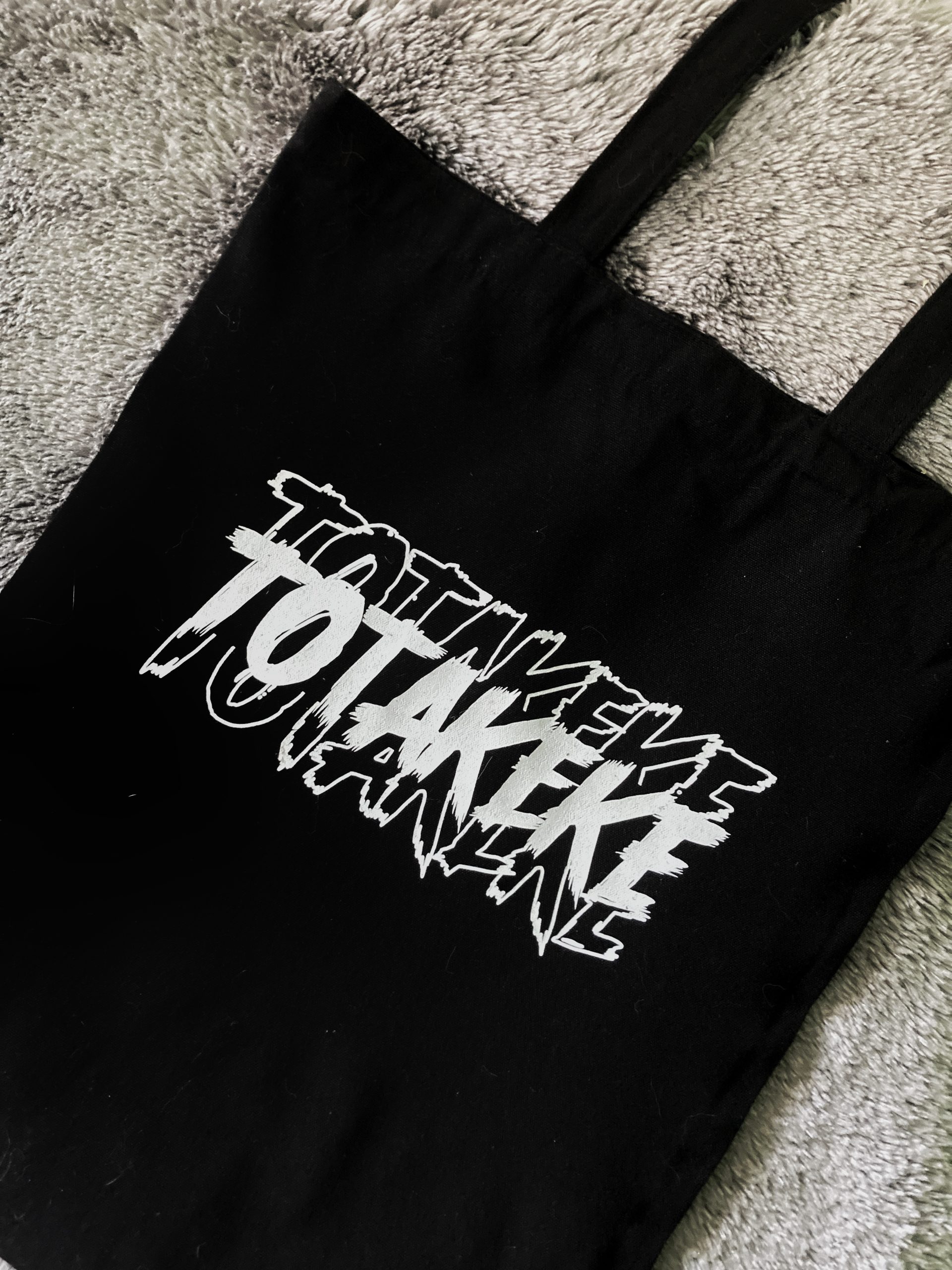 Con un diseño minimalista que destaca el logo de Totakeke, esta tote bag es el complemento imprescindible para cerrar tu look de concierto.